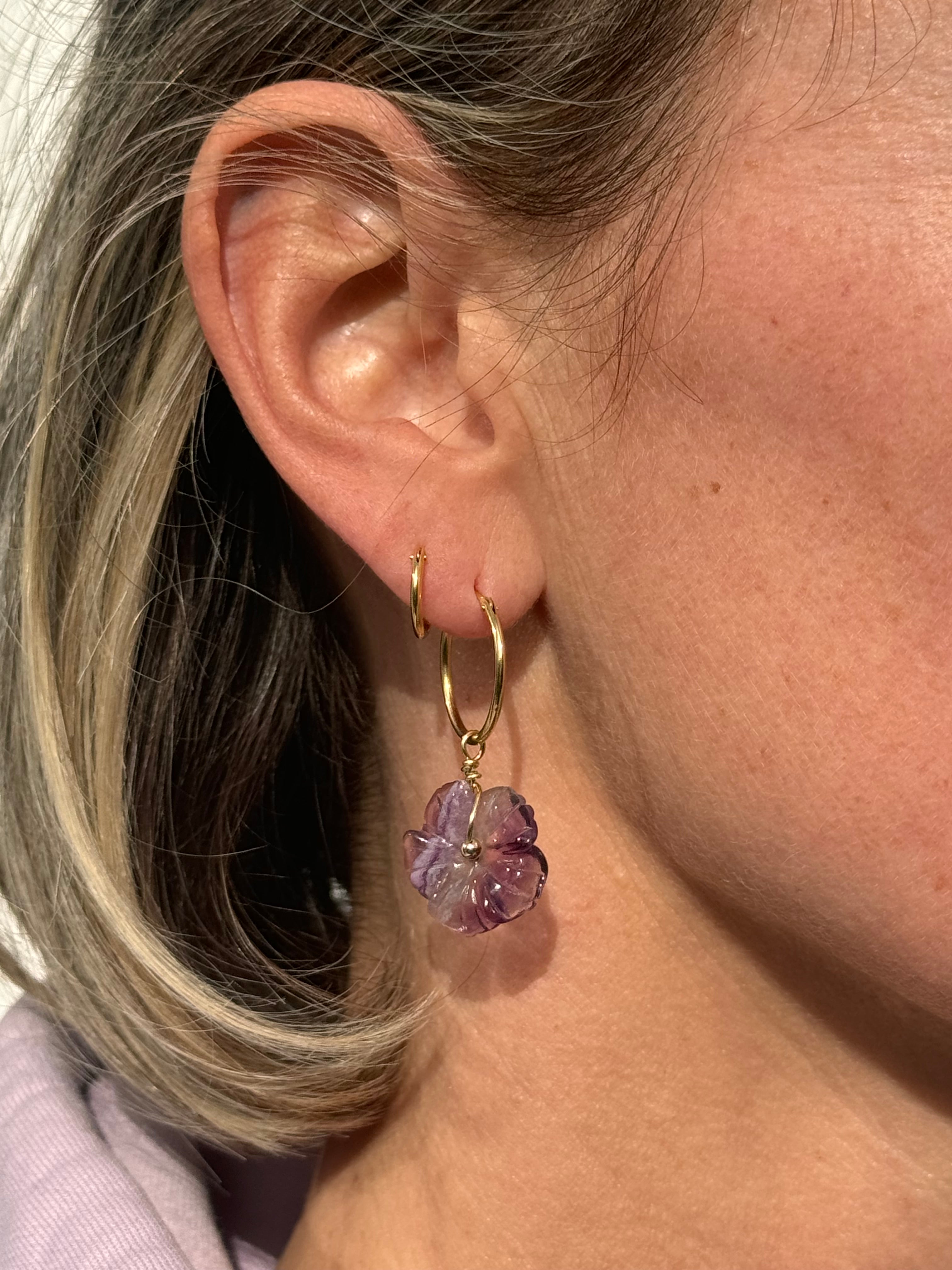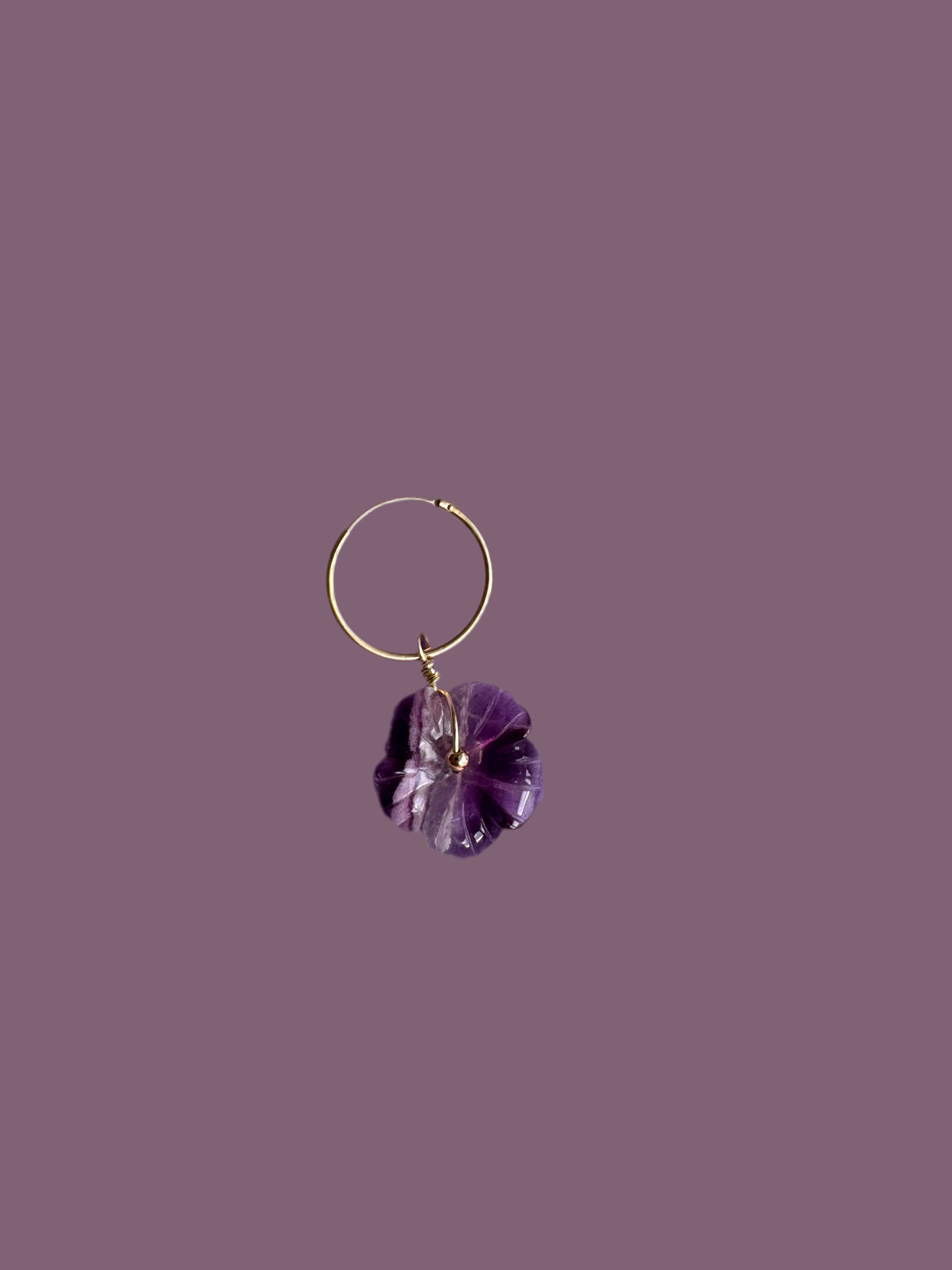 14k golden Amethyst flower earring with a 14k golden mini dot. One piece