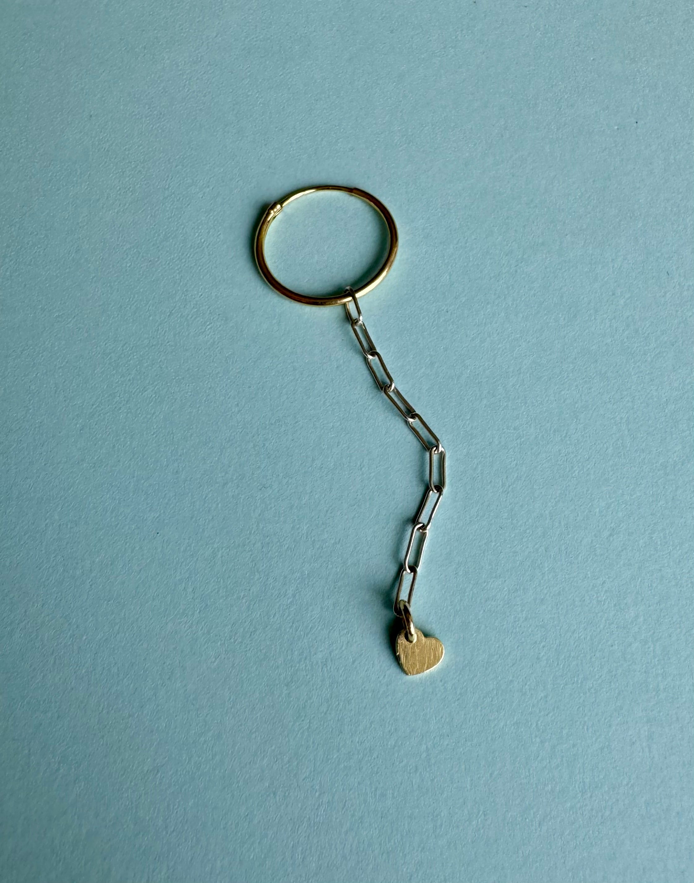 14k golden hoop earring with a 925 silver link chain with a 14k golden mini heart. Total length 6,2 cm