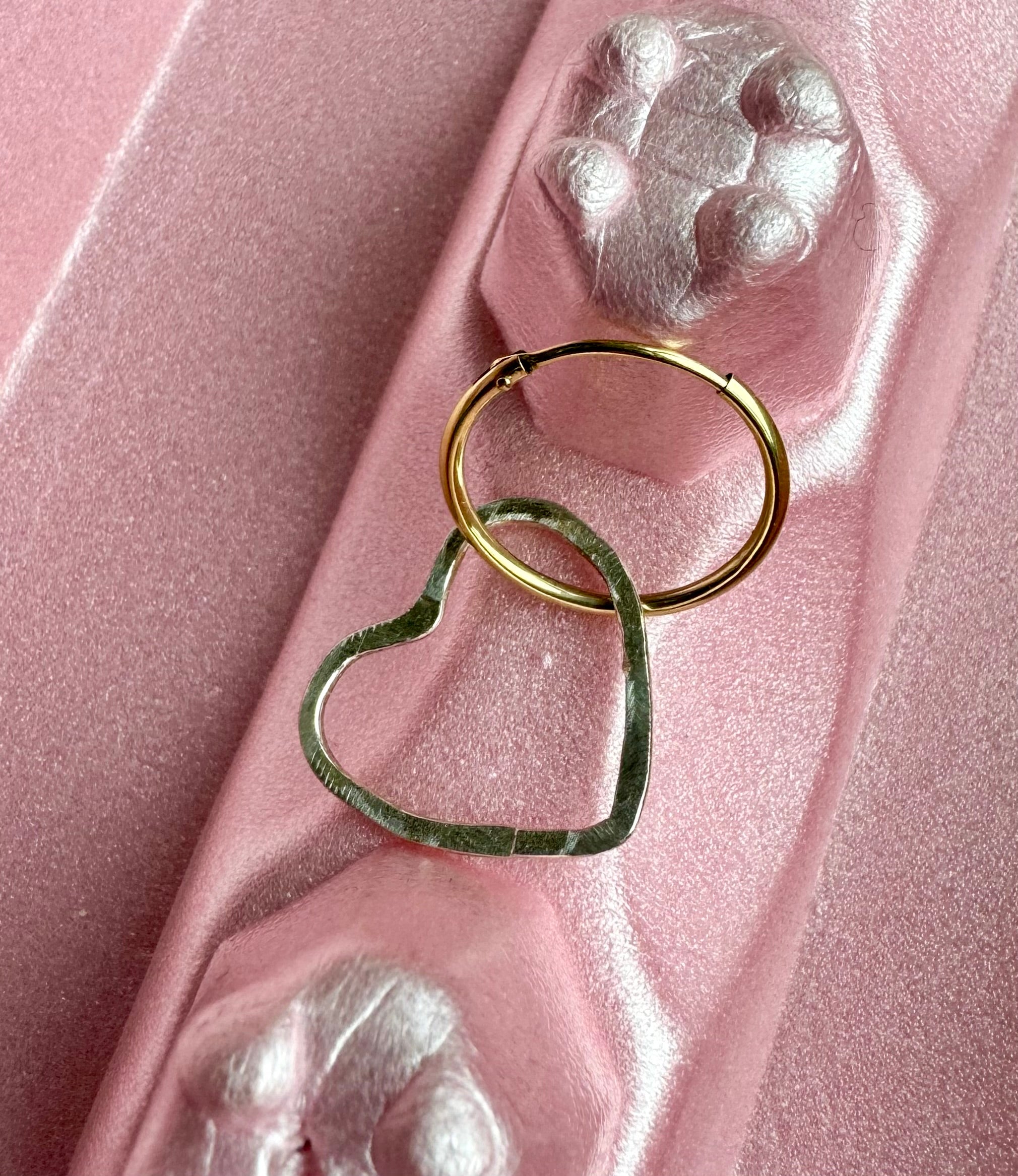 925 Silver hammered heart with a 14k golden hoop earring. Total length 3,4 cm. One piece