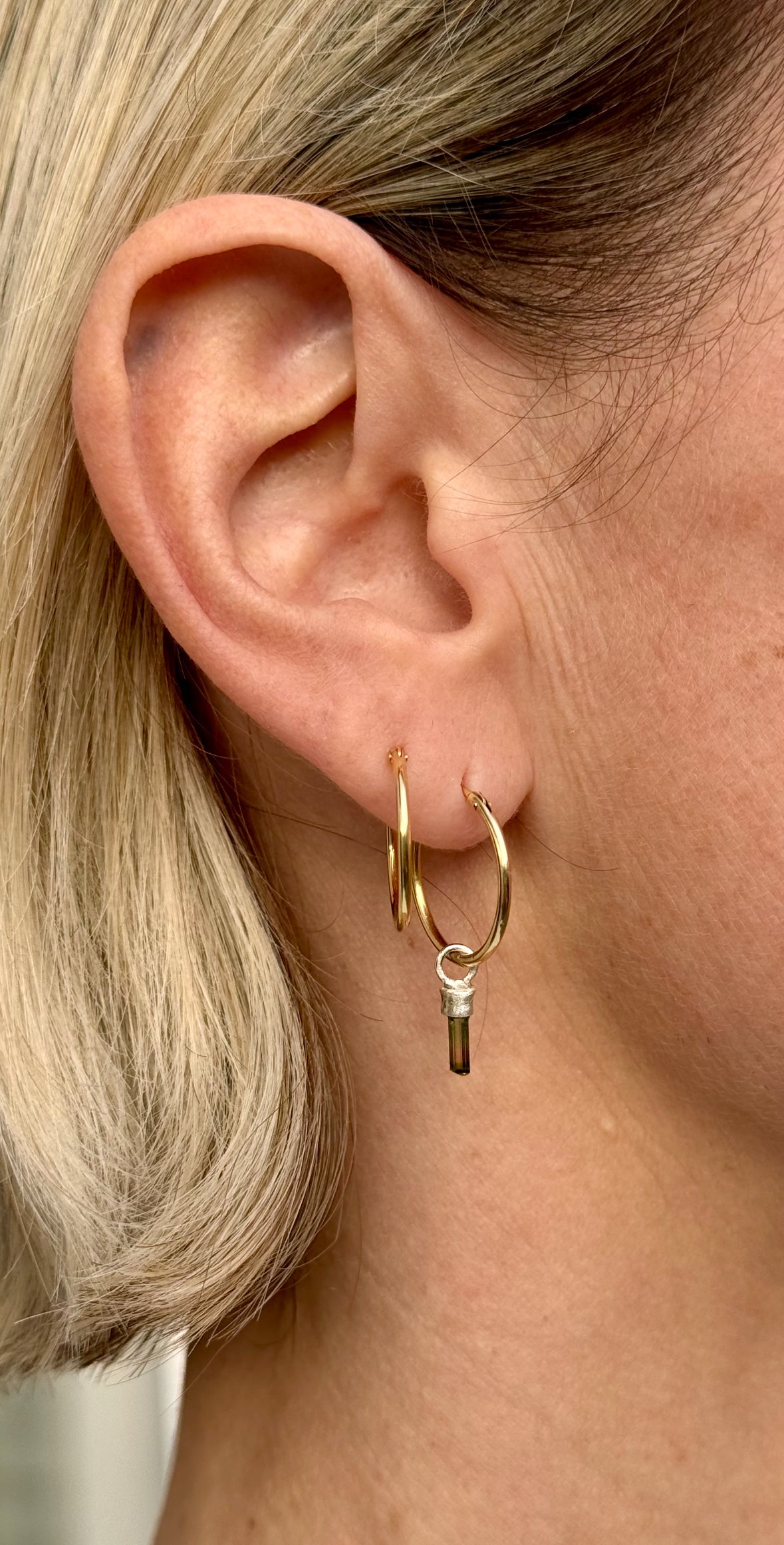 925Silver mini tourmaline with a 14k golden hoop earring. One piece.